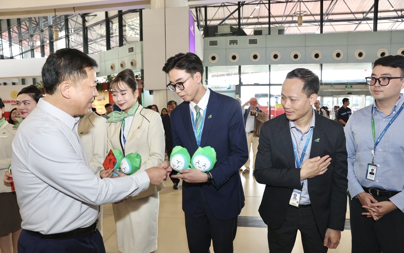 On the afternoon of February 16, 2026, the staff of Bamboo Airways working at Noi Bai International Airport had the honor of welcoming Minister of Construction Tran Hong Minh, Deputy Minister Le Anh Tuan, and Director General of the Civil Aviation Authority of Vietnam Uong Viet Dung for a Lunar New Year visit and encouragement during the peak operational period at the end of the Year of the Snake.