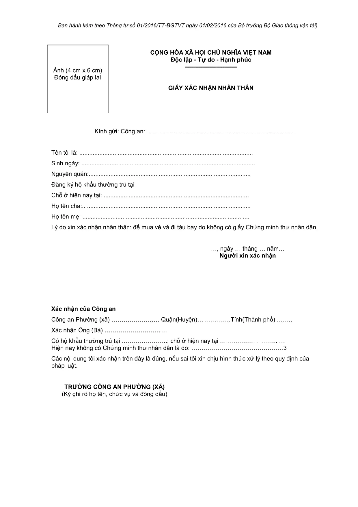 - 여권 또는 입출국법에 따른 유효한 탑승 허가서 또는 기타 관련 신분증, 예를 들어 출국 비자, 상주 비자, 임시 거주 비자, 국민 신분증 (베트남 및 관련 국가 간 양자 협정 또는 국제 협정에 따라 국민 신분증 대신 국제적으로 승인된 국민이 사용할 수 있는 경우 국민 신분증 대신 사용될 수 있음)… (이하 "규정에 따른 유효한 입출국 신분증"으로 통칭함); 만약 아이가 별도의 여권이 없는 경우 법률에 따라 법정 대리인인 아버지, 어머니, 입양 부모, 후견인의 여권에 아이의 이름, 생년월일, 사진이 기록되어 있어야 합니다
