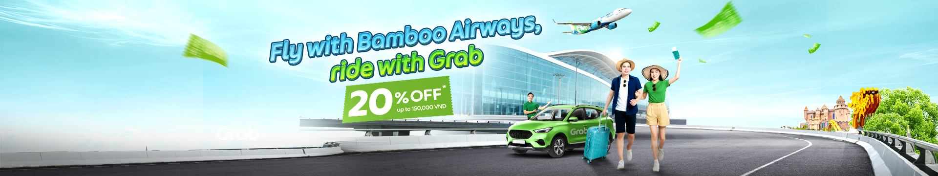 Exclusive offer for Bamboo Airways passengers on Grab:Enter code BAMBOO1 - Get 20% off* your ride fare, up to 150,000 VND per trip |