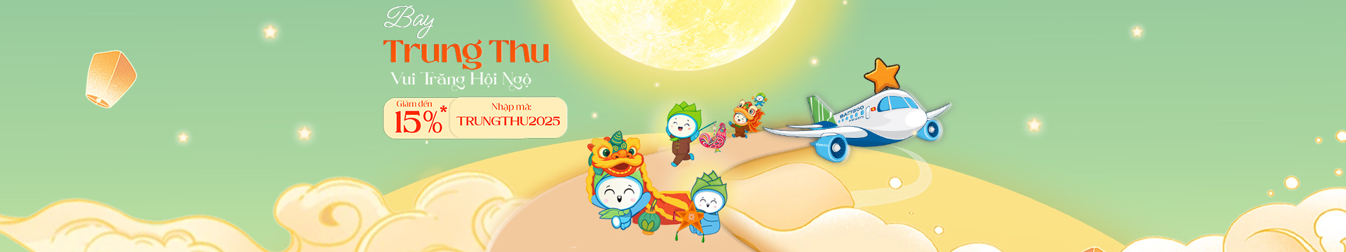 Bamboo Airways hân hoan mang đến ưu đãi Trung Thu, giúp bạn kết nối những khoảng cách, viết nên câu chuyện đoàn viên dưới ánh trăng tròn. Hãy cùng nhau tậnhưởng mùa Trăng ngập tràn niềm vui!
